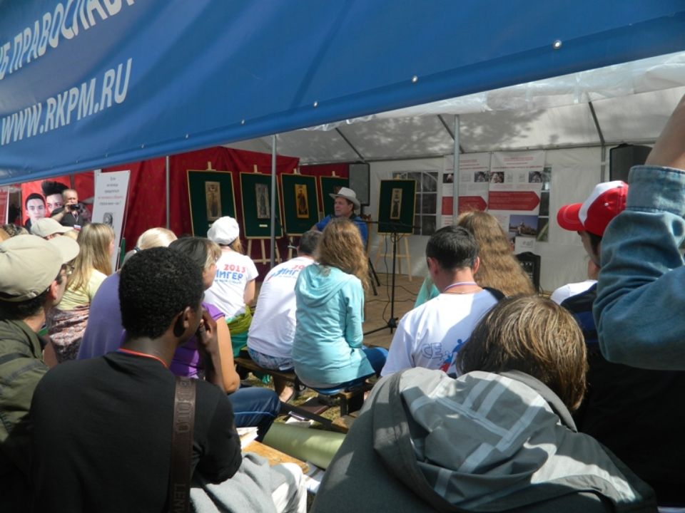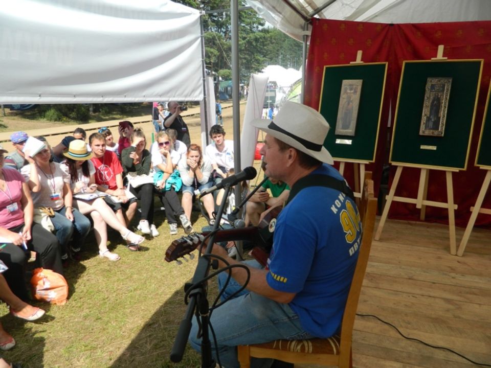 В день официального выступления композитора в Арт-объект нашего Клуба пришла уже знакомая с идеями Григория Гладкова аудитория. Трудно передать душевную атмосферу, присущую только фестивалям бардовской песни, которая царила возле нашей палатки. Если Вы внимательно всмотритесь в лица слушателей на фотографиях, убедитесь, что современная молодежь с удовольствие слушает песни со смыслом и активно участвует в мастер-классах развивающих в человеке творческое начало.