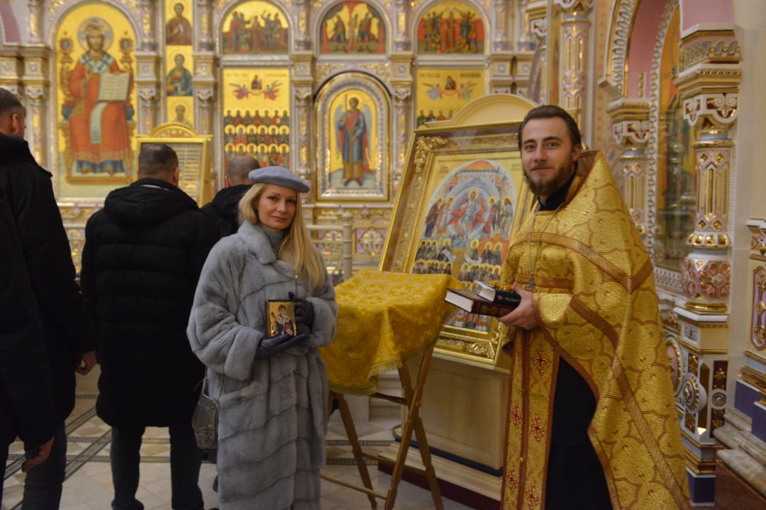 25 декабря 2025 года в Храме Всех Святых в г. Минске состоялся акафист святителю Спиридону Тримифунтскому, чудотворцу. Перед иконой и мощами святого Спиридона собрались участники и друзья Белорусского Представительства Российского Клуба Православных Меценатов во главе с его руководителем Александром Копелевым и Заместителем Председателя Правления РКПМ по культуре Ириной Видовой.