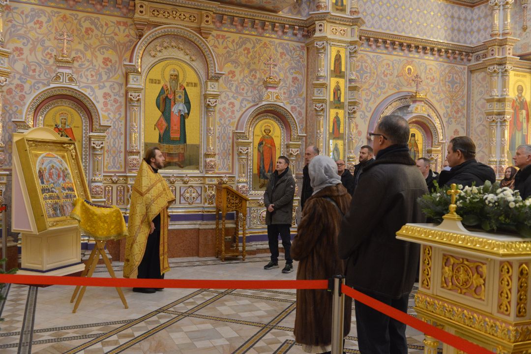 По окончанию акафиста Ирина Станиславовна поделилась своими впечатлениями о посещении Храма на острове Корфу (Керкира), в котором находятся Святые мощи Спиридона Тримифунтского: «В октябре 2024 года, по рекомендации РКПМ, вместе со съемочной группой мы направились на о. Корфу для съемок клипа «На одной волне». Место было выбрано не случайно, а потому, что это самый зеленый из всех греческих островов. А еще Корфу находится под покровительством Святого Спиридона Тримифунтского, дарующего надежду и здоровье страждущим. Зайдя в храм поклониться святому Спиридону, мы увидели справа от алтаря святыню - серебряную раку с мощами святителя Спиридона, украшенную иконками из эмали. Нам повезло, рака была открыта. И в дальнейшем, я постоянно ощущала чудесную помощь Святителя в абсолютно разных жизненных ситуациях. И что оказалось удивительно для нас, делегации из Беларуси, в церковной лавке, при храме, работала женщина из нашего города Молодечно, которая разговаривала с нами на белорусском языке ...».